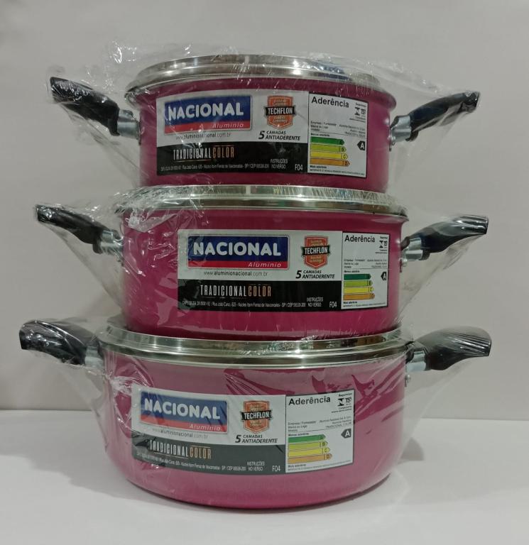 | Nome do Produto | : | CONJUNTO PANELAS CAÇAROLAS ROSA 16cm(1,410lts) 18cm(2,050lts) 20cm(2,805lts) C/TAMPA DE VIDRO (ALUMINIO NACIONAL) |